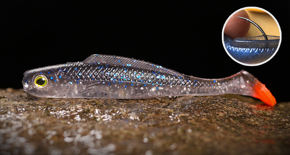 • dvojitá hřbetní ploutev pro věrnější siluetu a ukrytí háčku (výborně se oproti jednoduchým ploutvičkám napichuje!!!)
